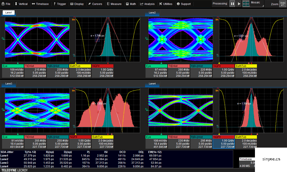 Teledyne LeCroy SDAIII-CompleteLinQ 串行數據分析產品包含多通道眼圖和抖動分析、LaneScape 比較模式、垂直噪聲測量和串擾分析工具。 這些功能提供了對多通道或單通道串行數據系統行為的深入了解。