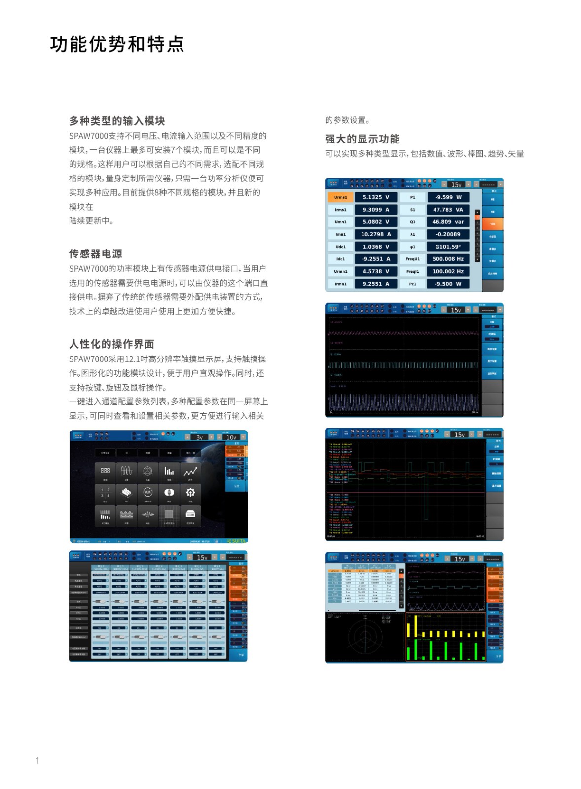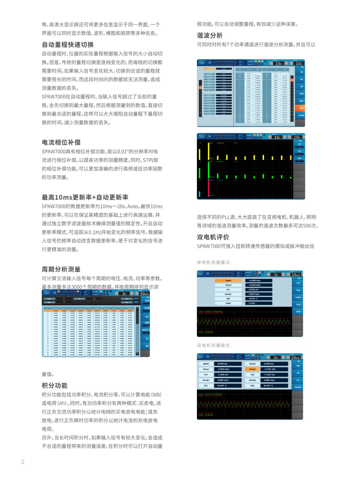 功率分析記錄儀SPAW7000高測量精度 (讀數(shù)0 01%+量程0 02%)最快10ms數(shù)據(jù)更新率低壓穿越測試7個功率通道+2個電機通道板卡支持自主插拔7路不同PLL源諧波同時分析500次諧波測量實時數(shù)據(jù)存儲